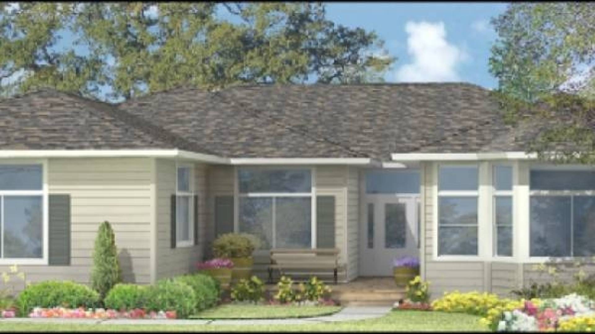 The Murrieta panelized kit home is a modern design that features multiple master suites branching away from a central dining and entertainment space. Each suite contains a full bath, with generous storage space provided by a walk-in closet. Ten-foot volume ceilings allow a more spacious feel throughout the house. The plan includes a self-contained media room with an enclosed closet for wiring and hardware accessibility. The garage showcases a side-entry design with room for multiple vehicles.